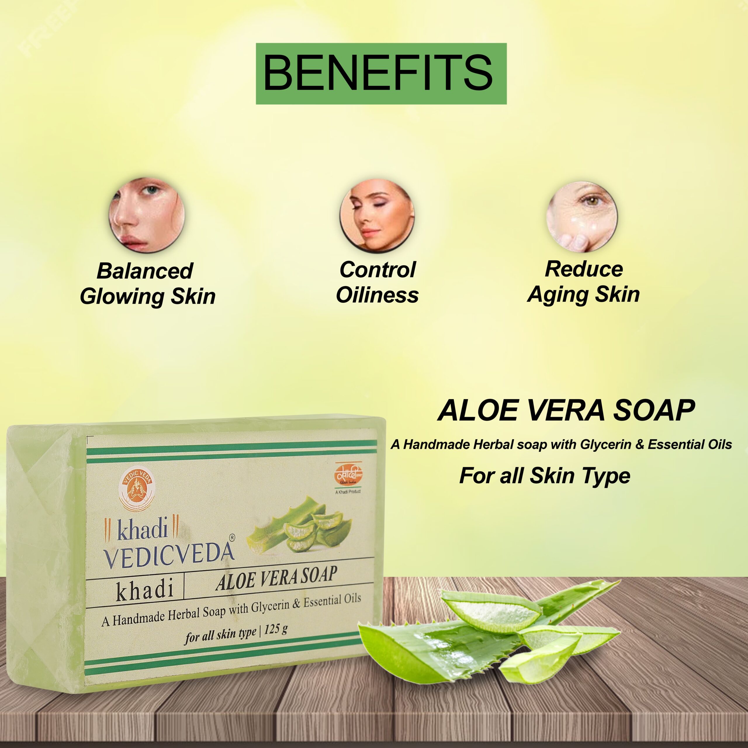 Aloe vera glycerin soap helps to clear the excess oil and remove dirt and pollutants. It heals the skin, making it soft and vibrant.It helps to reduce blackheads and pimples and make the skin more clear and bright.