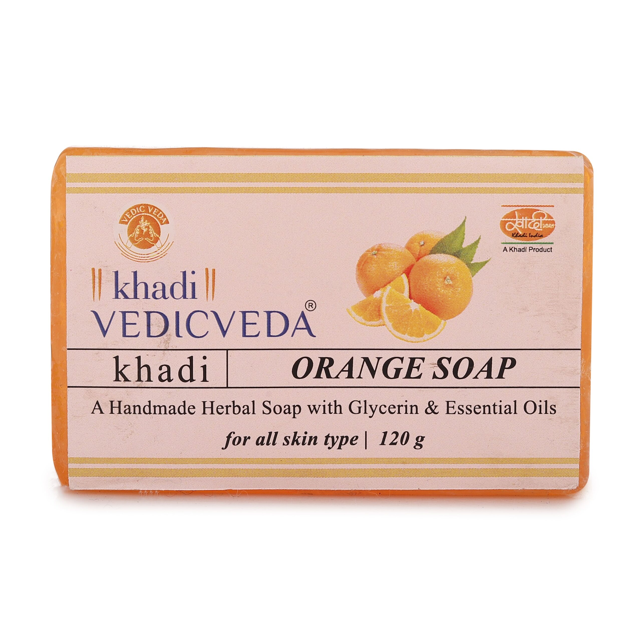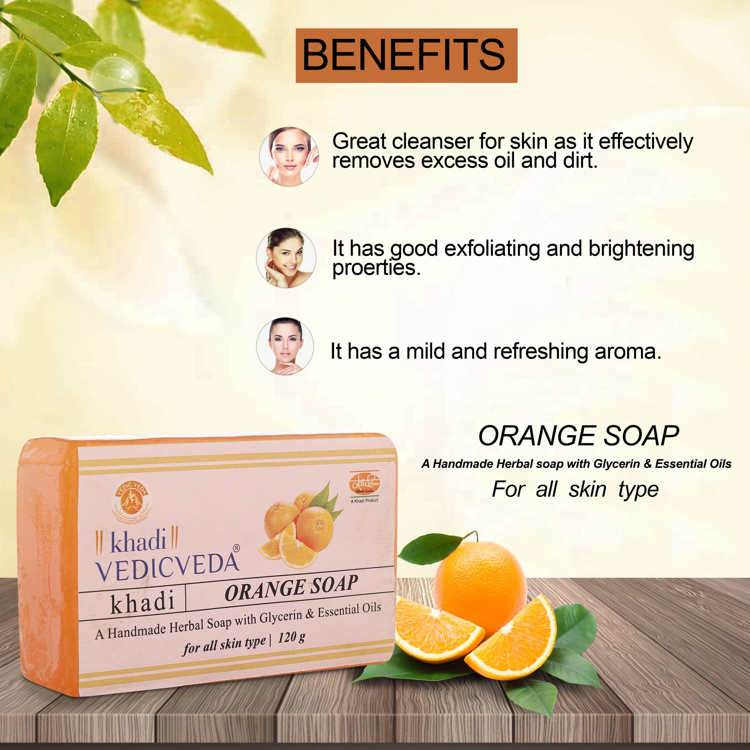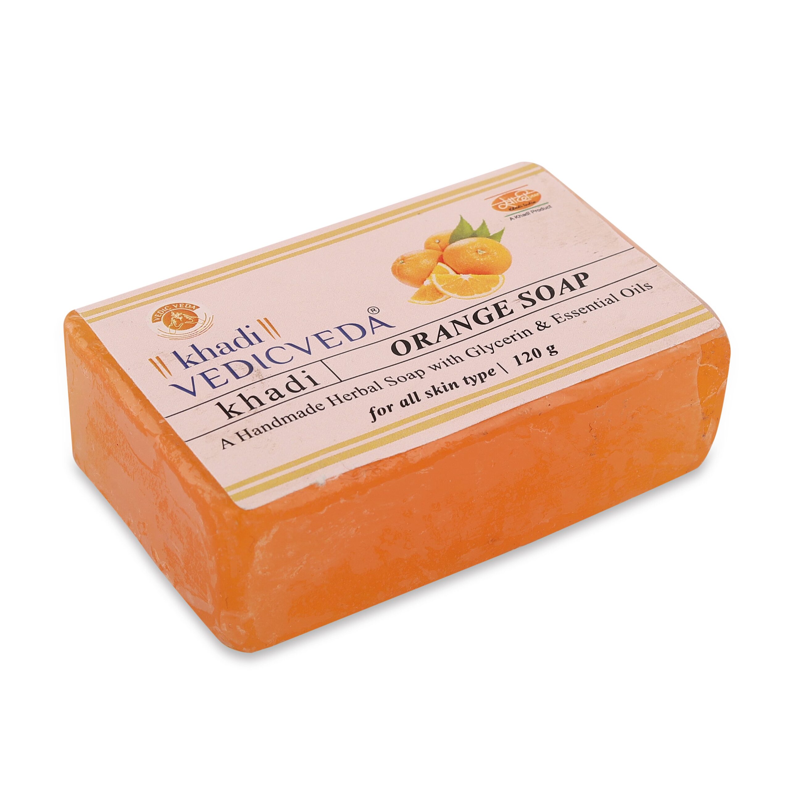 The Orange Khadi Herbal Soap comes with several distinctive features that make it a beneficial and appealing choice for natural skincare: